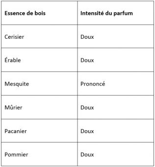 L’essence de bois que vous choisirez pour fumer vos poitrines influencera leur goût. En voici quelques-unes qui se marient à merveille avec la saveur du canard!