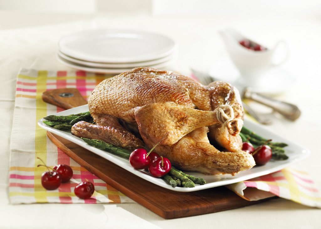 If the duck is frozen thaw in the refrigerator overnight. Remove from packaging and remove giblets in the cavity of the duck. Wash thoroughly under cold running water, drain excess water and pat dry with a paper towel.