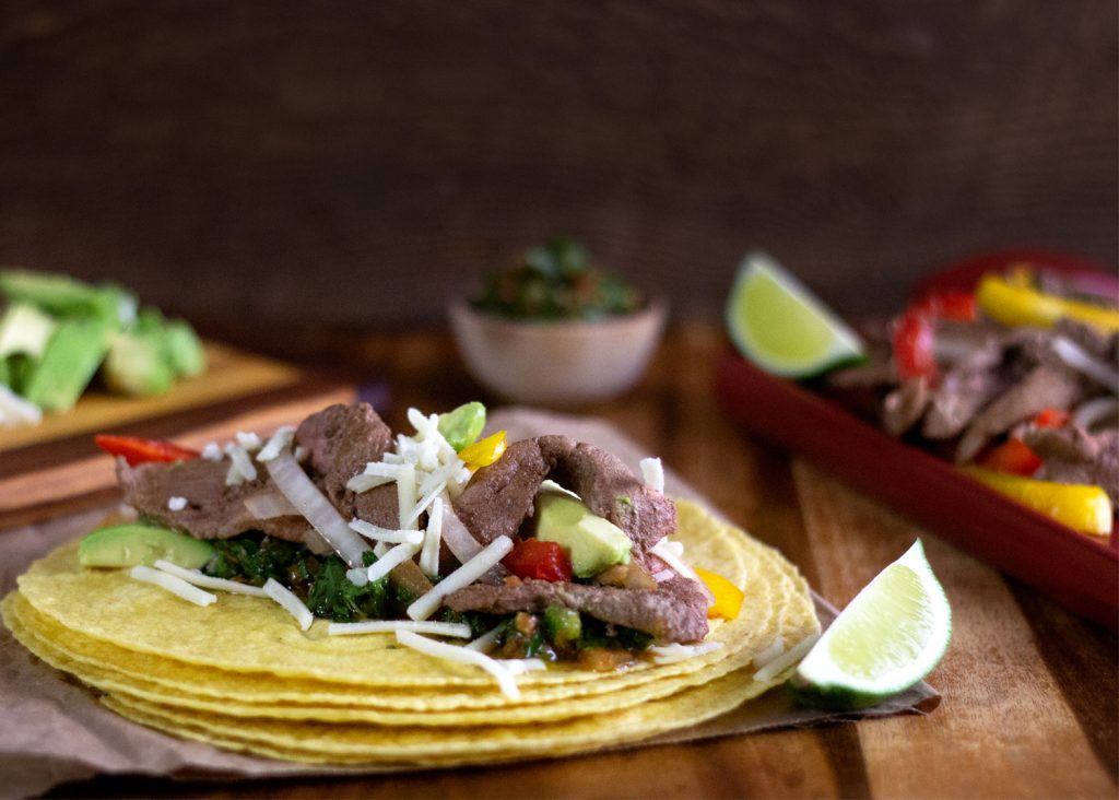 4. Transfer the duck mixture to a serving bowl and serve immediately at the table with the avocado slices, chimichurri salsa, grated cheddar cheese and tortillas. Allow each guest to make their own fajitas as they like.
