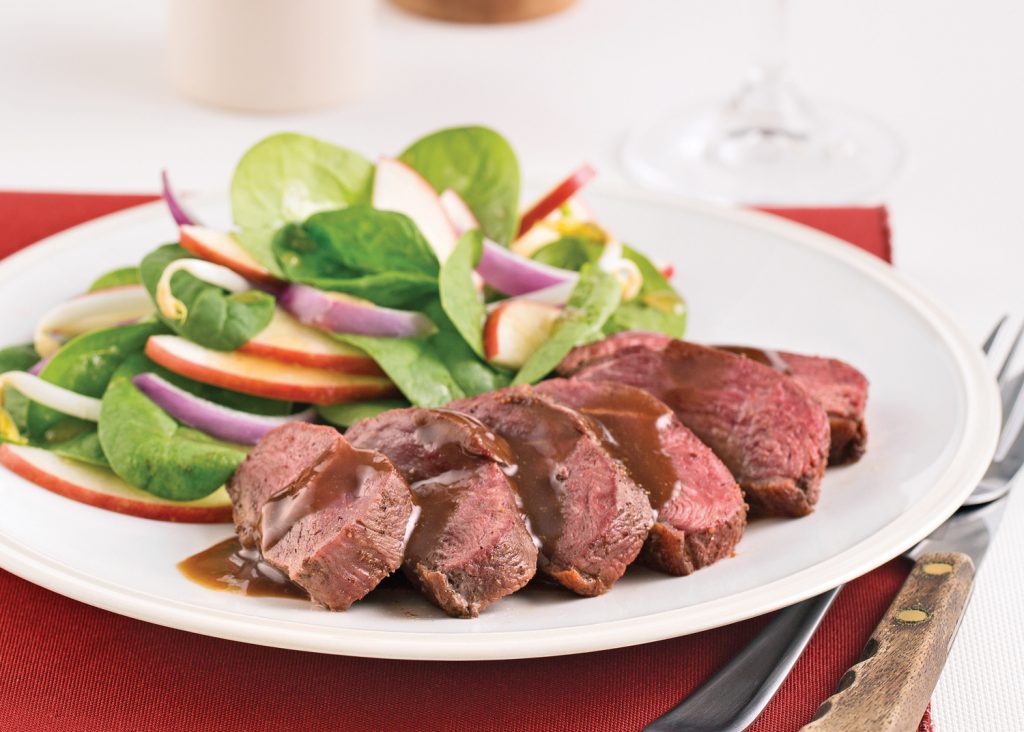 Dans une casserole, chauffer un peu d’huile d’olive à feu moyen. Cuire les échalotes de 1 à 2 minutes. Verser le porto. Porter à ébullition, puis chauffer à feu moyen jusqu’à ce que le liquide ait réduit de moitié. Ajouter la sauce demi-glace, puis porter de nouveau à ébullition. Laisser mijoter de 8 à 10 minutes, jusqu’à l’obtention d’une consistance sirupeuse. Réserver.
