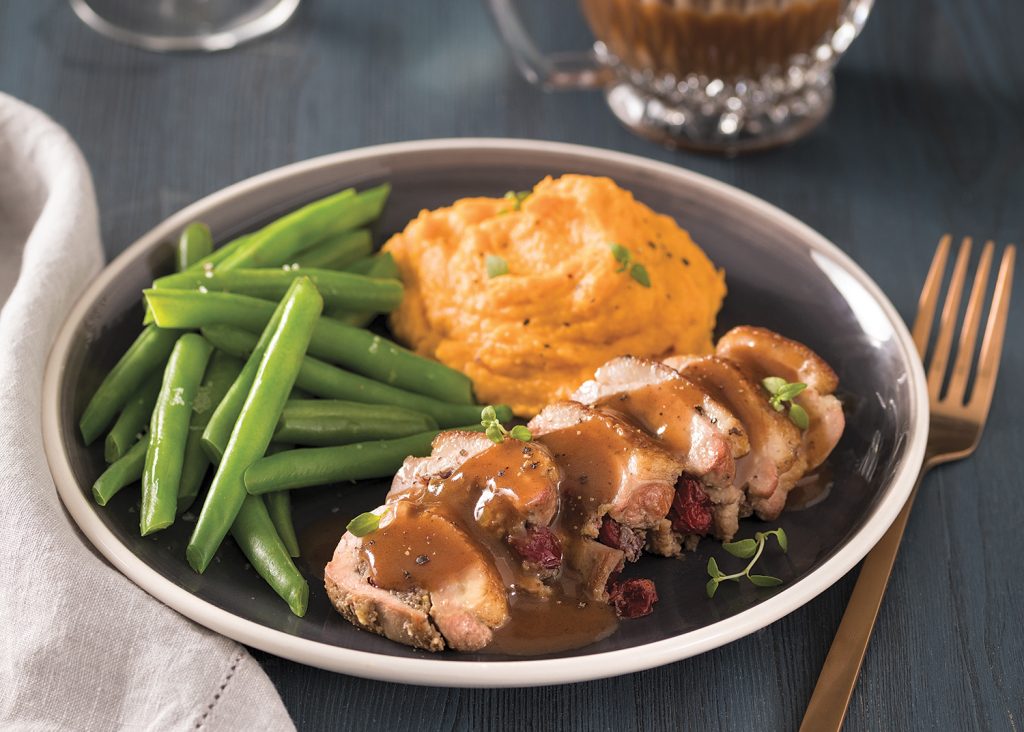 Ajouter la chapelure et les canneberges. Saler, poivrer et remuer. Retirer du feu et laisser tiédir.