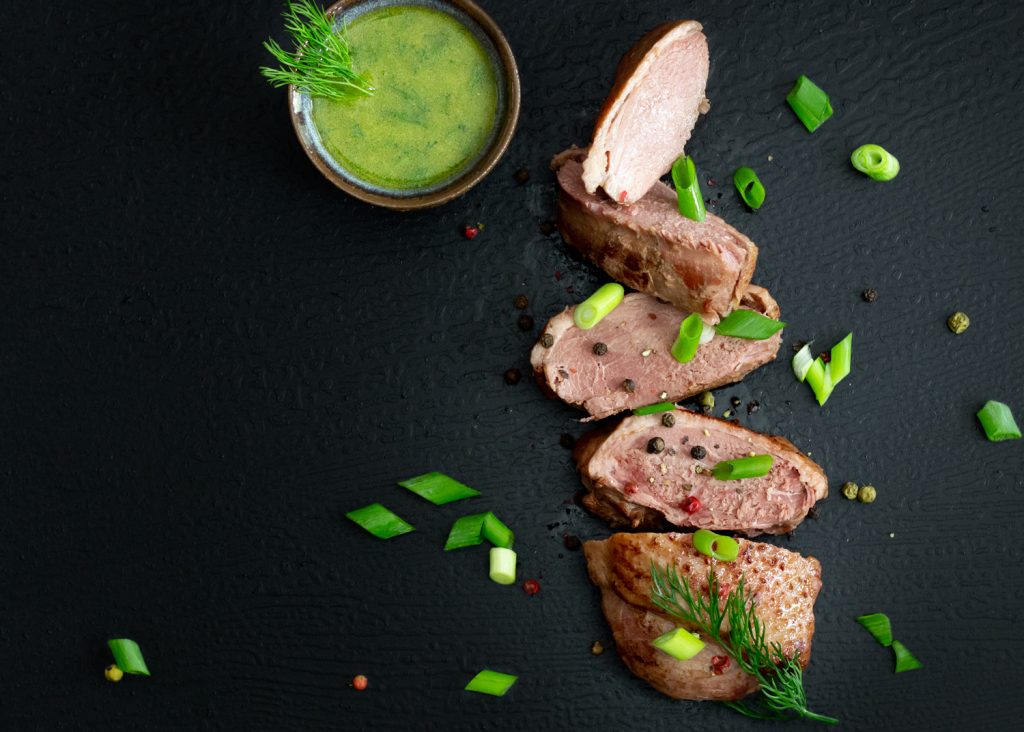 Poitrines de canard fumées, sauce aigre-douce à l’aneth et à la moutarde